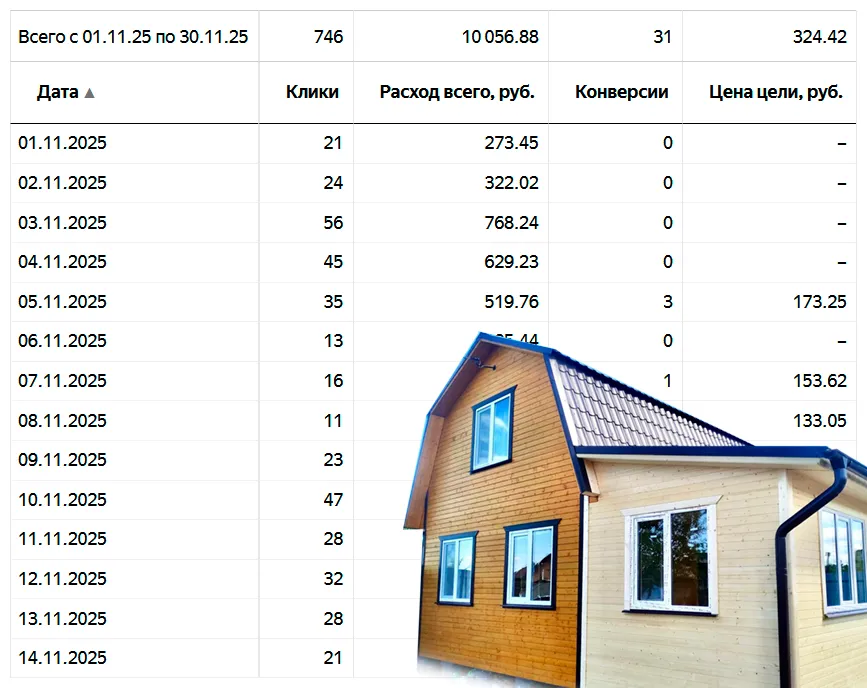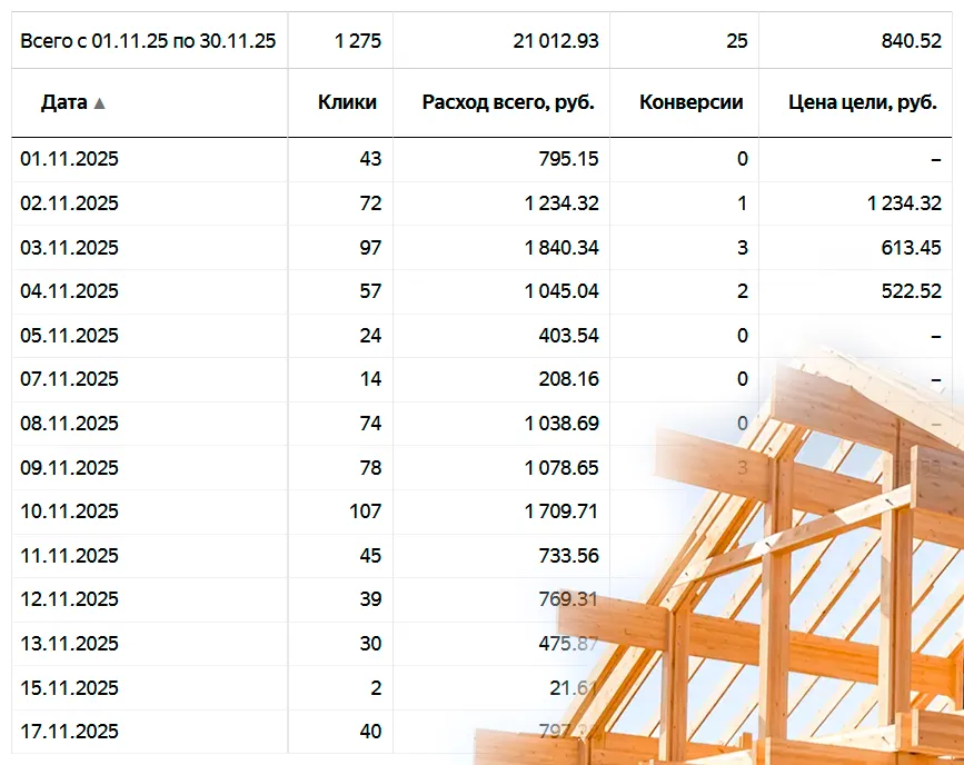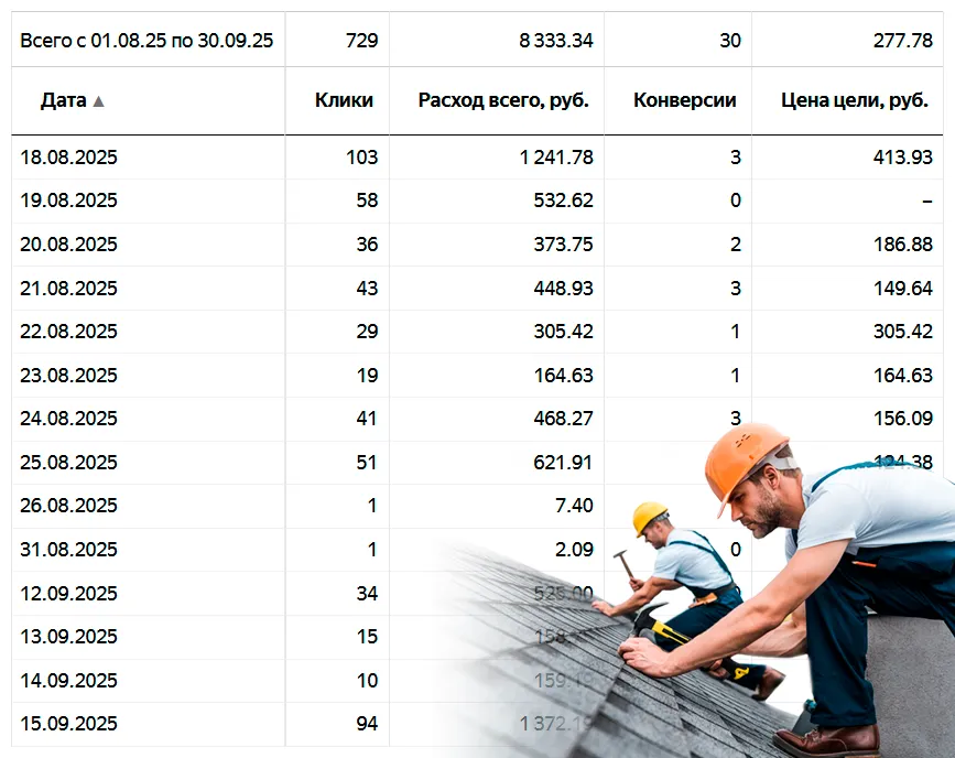 Некоторые строительные направления и их показатели рекламы за недавний период 2025 года. Могу быть максимально полезным в рекламе стройки: кровли, пристройки, крыши, фасады, реконструкция и строительство домов, фундаменты и другие направления!